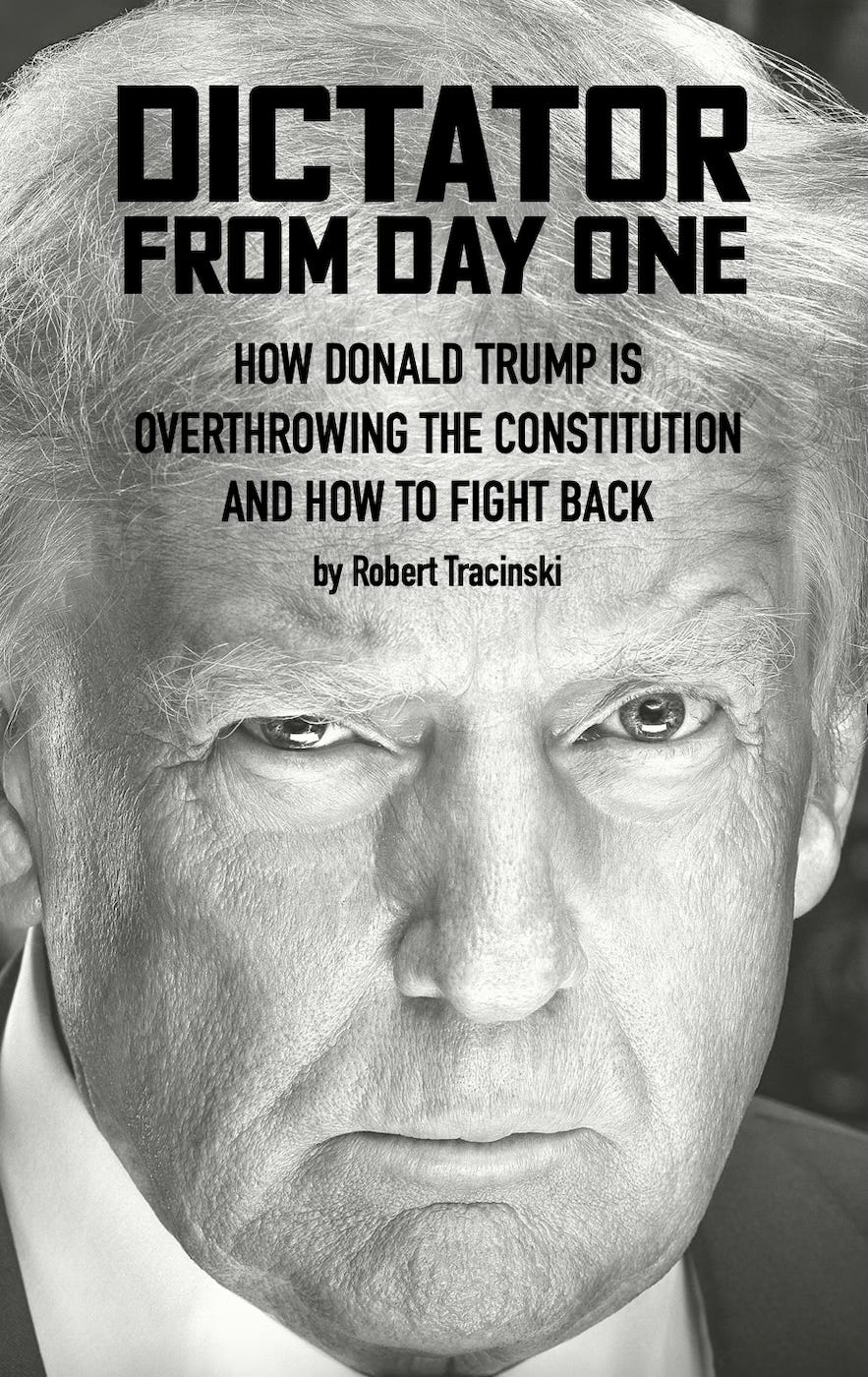 I’m calling it Dictator from Day One, with the subheading, How Donald Trump Is Overthrowing the Constitution and How to Fight Back.