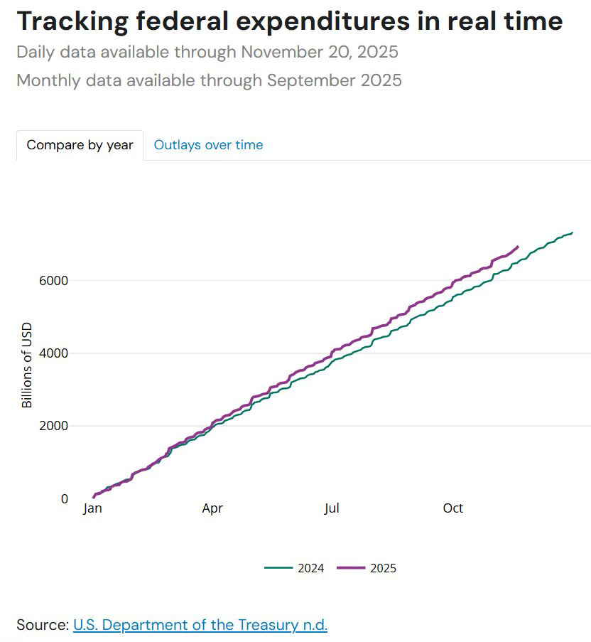 The Treasury regularly releases figures on total federal government spending, and those numbers show spending for 2025 on exactly the same course as spending for the prior two years—only at a slightly higher level. All the claimed savings from DOGE have had no impact whatsoever on actual government spending….